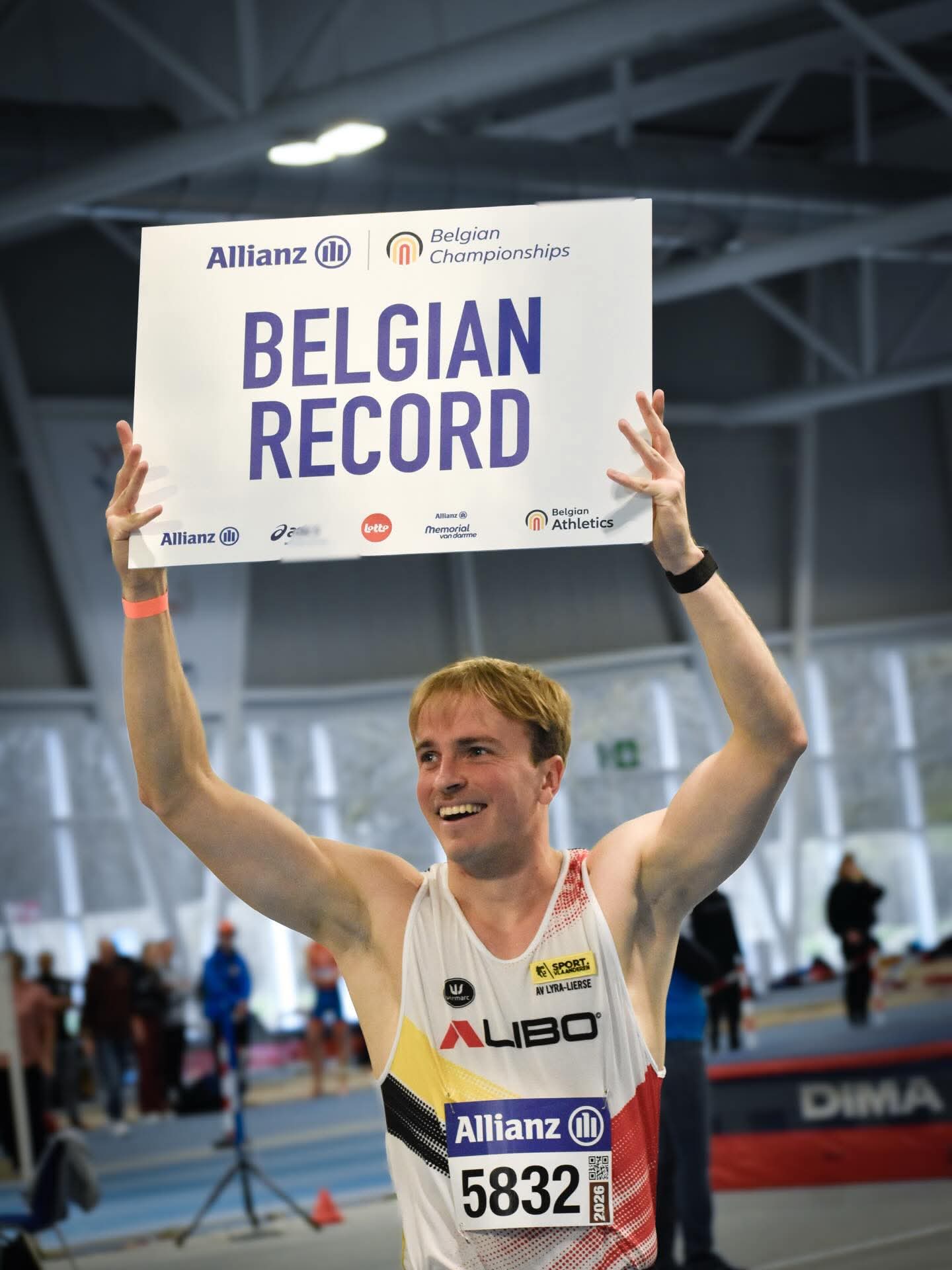 Sprintbom Simon knalt 41-jaar oud Belgisch Record op de 60m aan diggelen en kwalificeert zich voor WK in Polen!