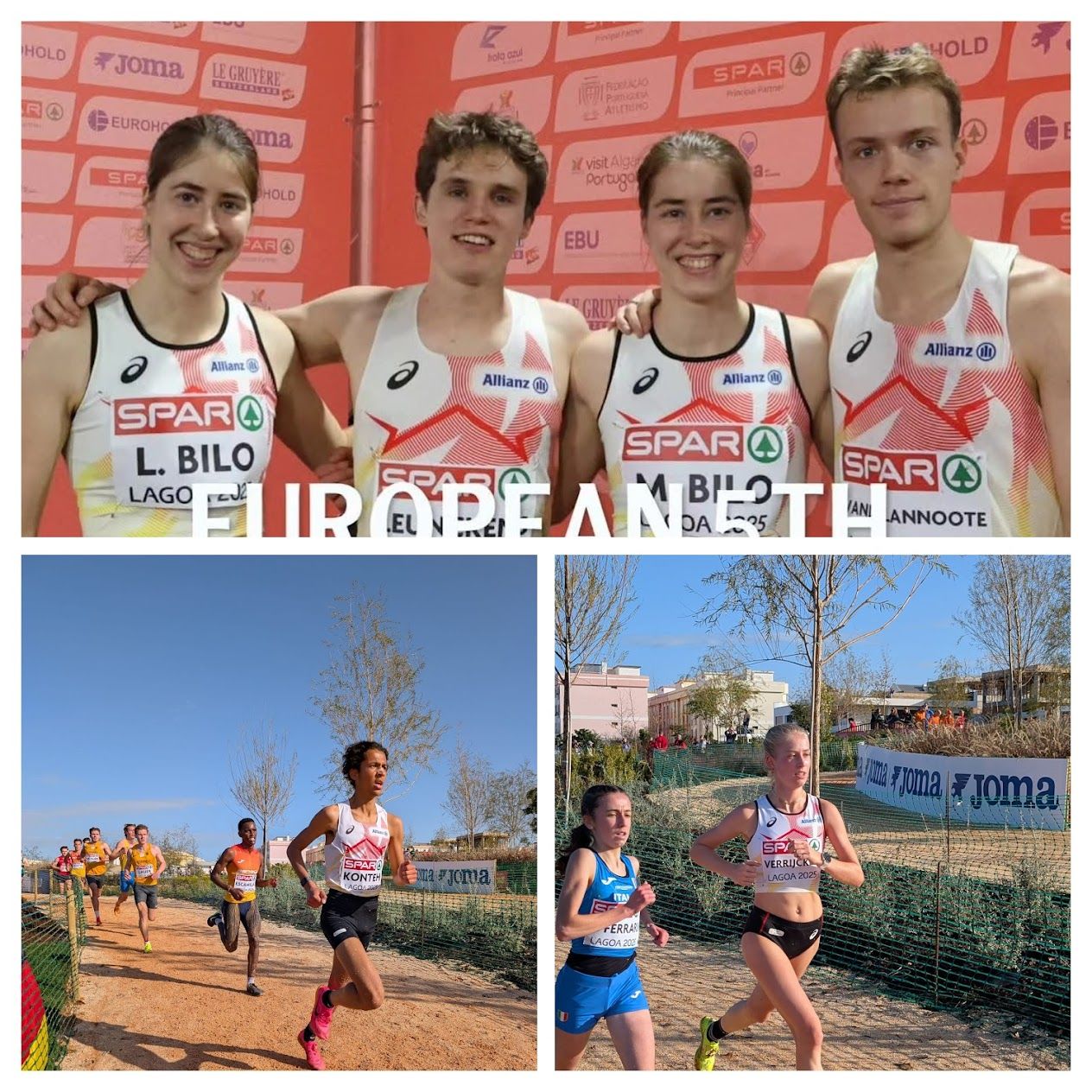 Met 3 AVLL-atleten leverde onze vereniging een mooie en belangrijke bijdrage bij het 'Belgium Team' op de Europese Kampioenschappen veldlopen in het Portugese Lagoa (Algarve). Op een atypisch en loodzwaar parcours met heel wat hoogtemeters en weinig of geen recuperatiestroken, wat meer leek op een 'parkloop', kwam eerst Laure, nog maar eerstejaarsjunior en al meteen een Internationale selectie, in actie. Als je merkt dat ze hier moest optornen tegen atleten die soms 3 jaar ouder waren, trok ze zich zeer goed uit de slag. Na een zware wedstrijd wist ze als 69° toch nog bijna 30 concurrentes achter zich te laten. Voor haar was het vooral belangrijk om ervaring op te doen en achteraf bleek ze dan ook zeer tevreden om van dit Internationaal toneel te mogen proeven. Haar aanwezige coach Pieter en ouders konden dit volmondig beamen. Bij de beloften hadden we Noah Konteh aan de start. Hij liep een goede wedstrijd en moest op het einde lichtjes toegeven om uiteindelijk als beste Belgische belofte de 15° plaats op liefst 75 deelnemers te halen. Ward tot slot had de eer het Belgisch Mixed relays team te mogen vertegenwoordigen. Hij als 2° loper en liep een zeer sterke ronde. Uiteindelijk wist hij als 5° de armband door te geven wat uiteindelijk ook de plaats bleek dat het mixed team met de zusjes Bilo en Tibo Vandelanoote haalde. Er kwamen 15 teams aan de start. Uiteindelijk was dit één van de beste Europese Kampioenschappen cross van de laatste jaren met 3 X Goud (Willem Renders (Jun), het mannenteam juniores en de dames seniores) en liefst 7 top-8 plaatsen en een 2° plaats in medaillestand na Spanje. Knap en blij dat ik dit live kon meemaken... deed ons allemaal deugd !!!