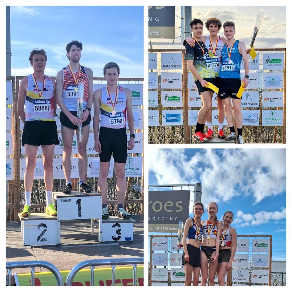 . De jeugd mocht deze keer openen en daar waren we bij de Kangoeroes met 9 en de Benjamins met 20 jonge cracks zeer sterk bezet. De pupillen (met 6) en miniemen (met slechts 3) lieten het alweer een beetje afweten, en dat vindt het jeugdteam niet zo leuk. Maar goed ere wie ere toekomt en daar houden we ons aan. De atleten met beperking toonden dan weer wel het goede voorbeeld en kleurden hun veldloop met de clubkleuren, met volledig AVLL-podium bij de heren met Elias, Jaro en Jeff en zilver en brons voor Annelies en Joke. Bij de pupillen zagen we veel inzet met Aurelie, Stien en Margot, terwijl bij de jongens Liam, Kasper en Jens ook hun uiterste best deden. Bij de miniemen ondervond Elise nog wat naweeën van haar griepje maar vocht toch moedig naar een mooie 7° plaats. Haar boezemvriendin Noa liep alweer een verstandige wedstrijd en raapte nog enkele meisjes op naar het einde toe waarmee ze schitterend 5de werd en 3de van de provincie, zeer goed voor haar klassering bij de crosscup van de provincie. Bij de jongens zagen we een mooie prestatie van Tibor die jammer genoeg als enige miniem jongen onze kleuren droeg en mooi als 13de binnenliep. Bij de cadetten zagen we zeer sterke prestaties van Julie, die terecht dolblij was om nog eens het podium te halen na een sterke wedstrijd. Eerstejaars Olivia maakte ook een enorm sterke indruk en moest pas op het allerlaatste de rol lossen van het leidende trio tweedejaars en als 4de finishte, knap! Bij de jongens zagen we dan weer een bijzonder sterke Senne, die lange tijd meestreed voor de medailles maar uiteindelijk schitterend 4de werd. Kranige 80-jarige Leon genoot alweer van zijn veldloop als goed voorbeeld! Bij de korte cross waren onze atleten gebrand op een sterke prestatie en slaagden daar ook schitterend in. Arthur Goous, broer van Cyriel, en Jasper Gielen streden samen voor zilver en brons, junior Jo liet ook een zeer sterke indruk na als 5de en Tibo en Joppe vochten een onderling duel uit voor de plaatsen 8 en 9. Junior Daan mocht de debatten sluiten. De poulain van Pieter liep een sterke wedstrijd en met een indrukwekkende eindspurt wist hij iedere junior voorbij te snellen en naar de zege te lopen. Een mooie afsluiter van een zonnige lente-namiddag veldlopen! Proficiat aan de deelnemers en hun begeleiders, coaches!
