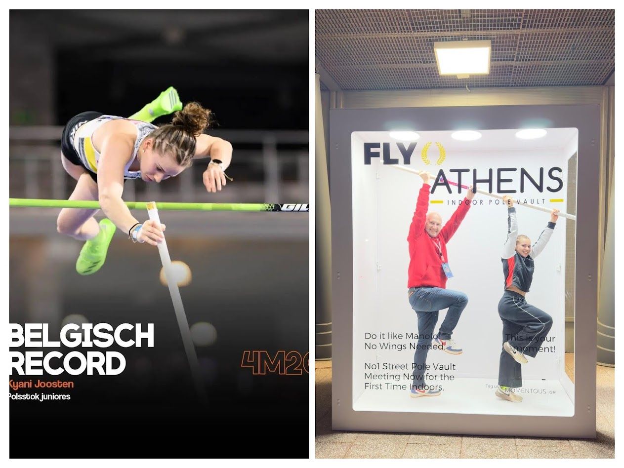 Een mooier debuut bij onze club kan je niet wensen. Kyani Joosten die de overstap naar onze club maakte, trok het voorbije weekend op uitnodiging naar het Griekse Athene om er de Fly Athens meeting af te werken. Ze opende met 3m75 om vervolgens in 2 pogingen over 3m90 te vliegen en de 4m05 ook te klaren. De lat ging echter onverbiddelijk naar 4m20 terwijl 4m12 haar record was. Bij de 3de poging op 4m20 slingerde ze zich toch prachtig over deze hoogte, zette hiermee het Belgisch record neer, leuk dat ze dit moet delen met Aurelie De Ryck, die ook bij ons was aangesloten, maar bovenal mag ze ook tijdens de zomer haar koffers pakken richting het Wereldkampioenschap U20 in Eugene (USA). Van een voltreffer gesproken! Gefeliciteerd Kyani en haar coach Steffen...!